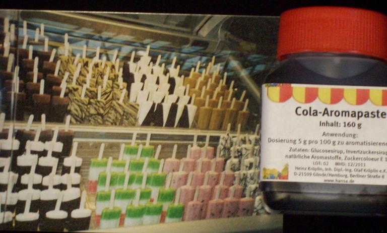 5 g Aromapaste in 100 g zu aromatisierende Masse geben.