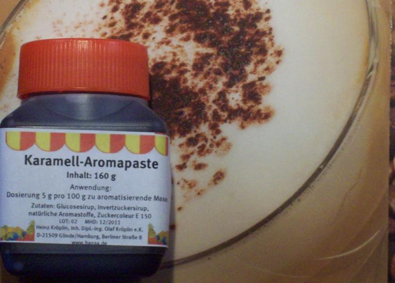 5 g Aromapaste in 100 g zu aromatisierende Masse geben.
