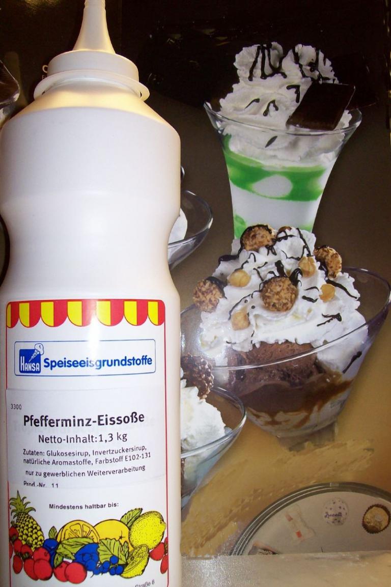 Sie sind hier: HANSA Eis, Eis zum selber machen » Eis Soßen A - Z » Pfefferminz Soße