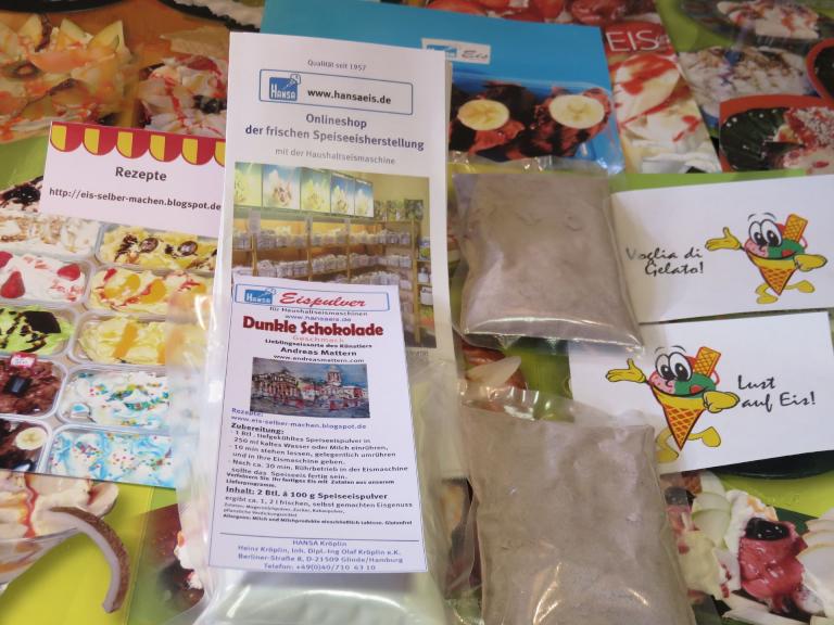 2 x 100 g Eispulver für ca. 1,2 Liter oder ca. 14 Eiskugeln á 50 g frischem Eisgenuß.
