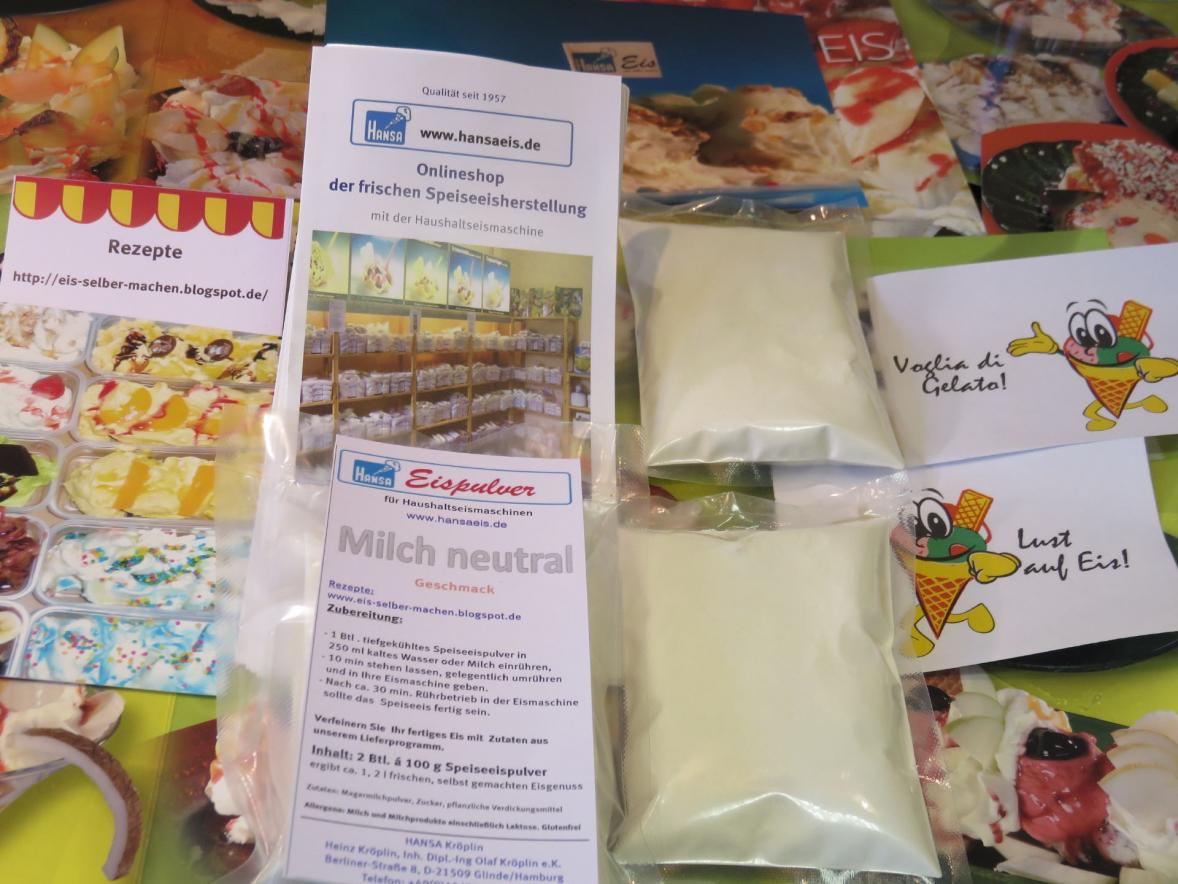 2 x 100 g Eispulver für ca. 1,2 Liter oder ca. 14 Eiskugeln á 50 g frischem Eisgenuß.
